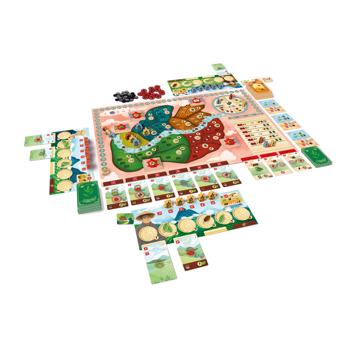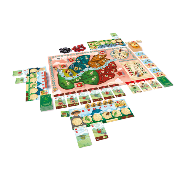 Beheer je eigen tuinen in dit thematische en tactische bordspel en breid die uit in het dal langs de rivier. De waarde van je kaarten bepaalt de kracht van de acties die je uitvoert. Vaar met de boot, volg een studie en oogst, fermenteer en verkoop je thee om dit spel in je voordeel te beslissen.
