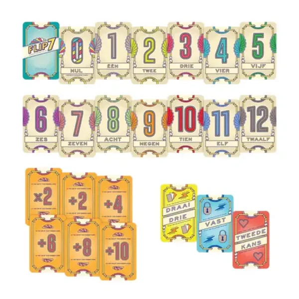 Flip 7 is het ideale kaartspel voor kleine en grote groepen. De eenvoudige spelregels en korte spelduur zorgen ervoor dat je met Flip 7 van elk moment een superspannend speelmoment kunt maken! Ben jij het type dat op tijd stopt en je punten veilig stelt of neem je liever het risico om alles te verliezen voor de kans om 7 verschillende kaarten om te draaien? Daag al je vrienden en familie uit en kom erachter wie het meeste lef en geluk heeft in Flip 7!